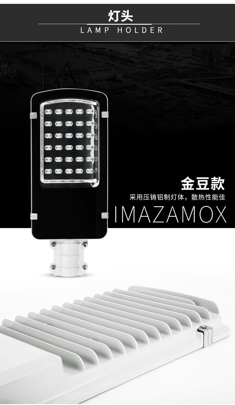 太陽能燈具:金豆燈具,30W光源,美國普瑞LED芯片。